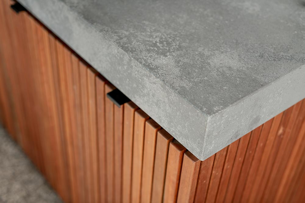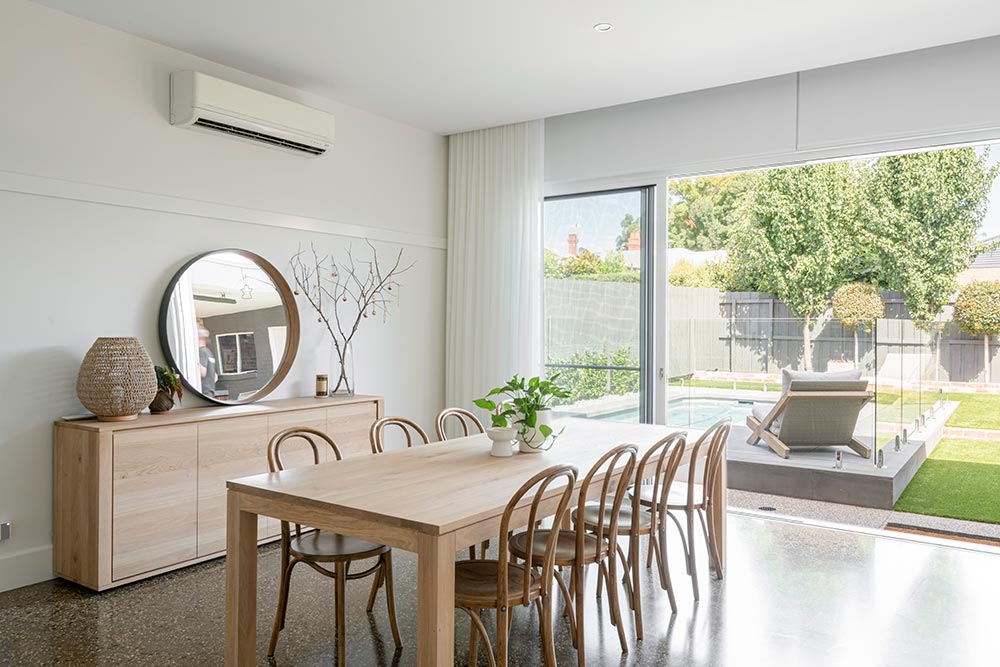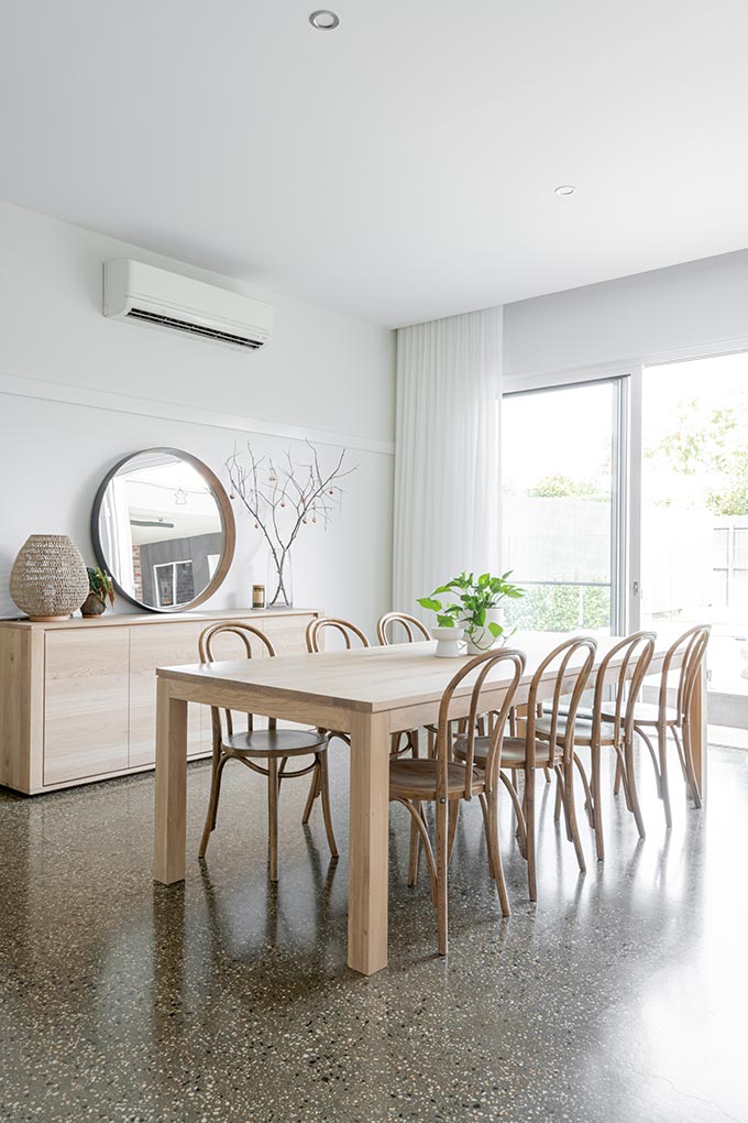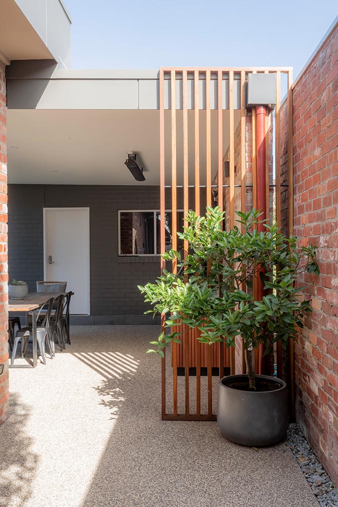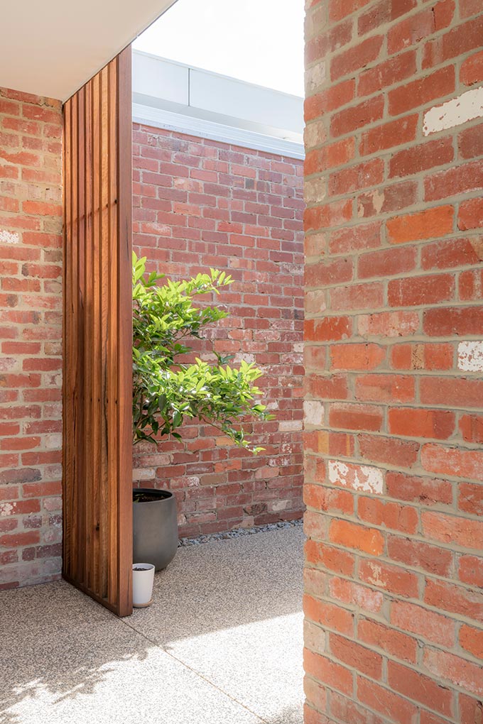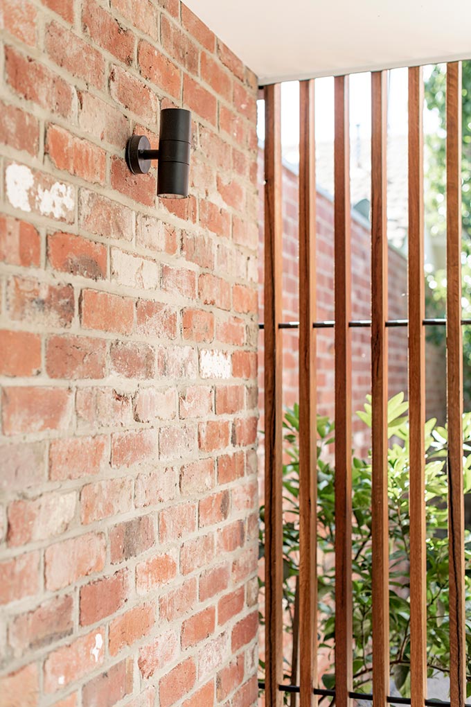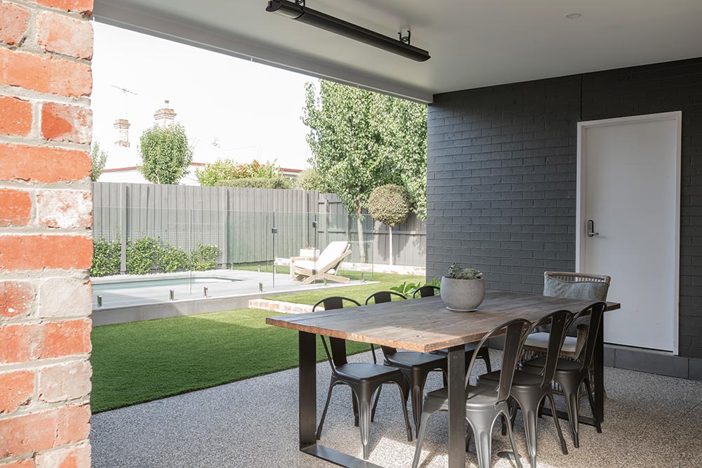 When you enter this area the first thing you’ll notice is the recycled bricks, the eclectic nature of these bricks gives the overall feel and character of industrial architecture. The warmth of the timber cladding on the external kitchenette cabinetry blends beautifully with the bricks. The concrete benchtop on the kitchenette continues the industrial flavour. The new all white kitchen allows the recycled brick feature wall to exude its charm.
