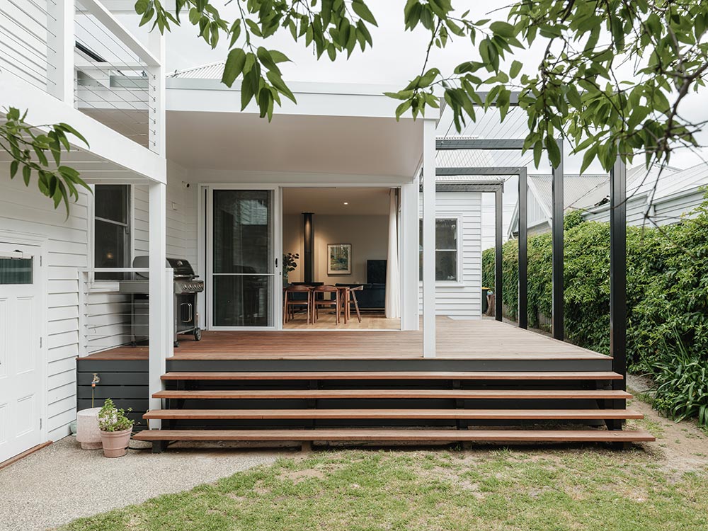 New flooring and fresh paint unified the interiors, while outside, the deck was extended and a striking freestanding steel pergola added. Floating tread stairs with integrated LED lighting became a standout feature. The result is a beautifully updated home, perfectly tailored to its owners’ lifestyle.